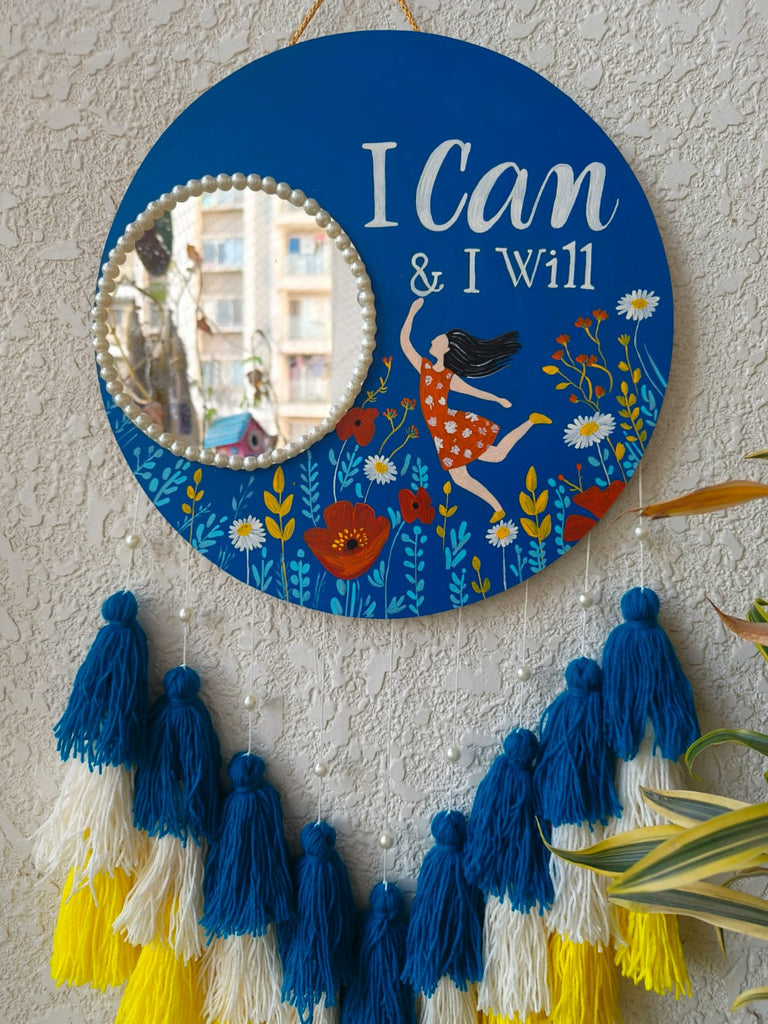 Hand-Painted 'I Can & I Will' Wall Decor with Mirror & Tassels